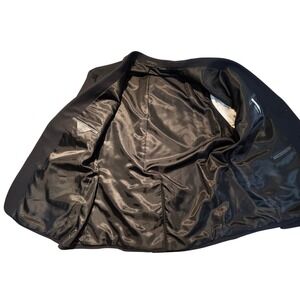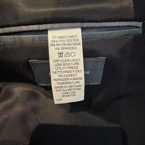 Keywords: Geoffrey Beene suit, mens black suit, two piece suit, formal suit, business suit, 50 reg suit, 45W pants, classic suit, menswear, dress suit, wedding suit, interview suit, new with tags suit, black suit set