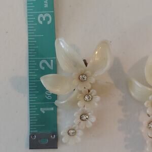 Vintage Floral Climber Earring Cream Ivory Rhinestone Clip On