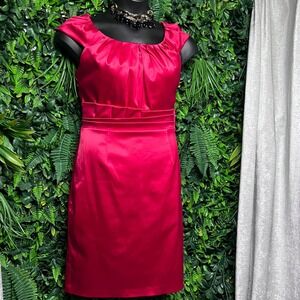 Keywords: Max and Cleo, Red Dress, Sleeveless Dress, Cocktail Dress, Party Dress, Career Dress, Size 12, Womens Dress, Pleated Dress, Cinched Waist, Elegant Dress, Special Occasion Dress