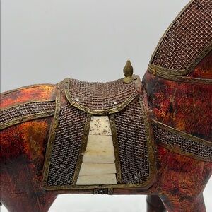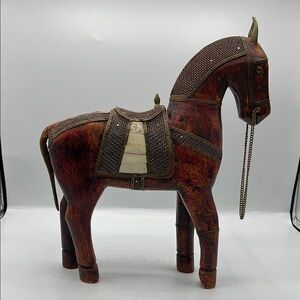 Beautiful Majestic Carved Wooden Horse Figurine 12” Tall with Rein & Saddle