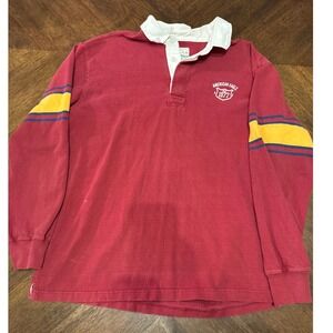 American Eagle Outfitters Vintage Rugby Shirt Long Sleeve Red Yellow Size L |Q1