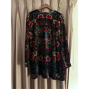 Johnny Was Velvet & Silk Floral Button Up Tunic sz XL NWOT