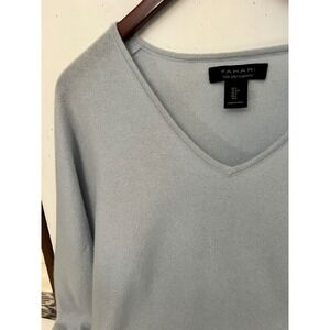 Tahari Light Blue 100% Cashmere V Neck Long Sleeve Sweater Top Women's L. I