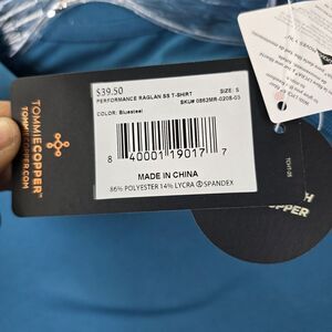 Tommie Copper Men's Compression Raglan Blue Lycra Spandex Copper TShirt Size S