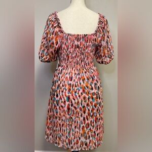 Size small, laying flat P2P 13” stretch to 15”, waist 13”: length 32”. Lined, smocked back. Fun party colors !