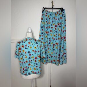Set, too and skirt bright floral with vibrant blooms. Vintage.