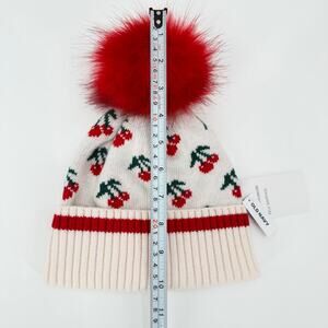 Old Navy Girls Off-White Knit Beanie Cherry Print Red Fur Pom-Pom Winter Hat NWT