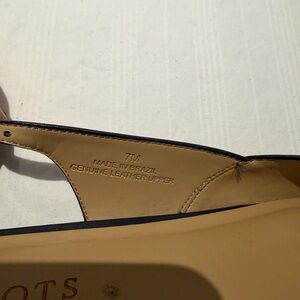 Talbots Navy Blue Leather Bow Slingback Flats - Made in Brazil - Size 7M Description Add a touch of feminine charm to your professional or casual look with these elegant Talbots slingback flats. Crafted in Brazil from premium navy blue leather, these shoes feature a sophisticated pointed toe accented by a delicate knotted bow. The adjustable slingback strap and low block heel provide a secure, comfortable fit for all-day wear. Details: • Brand: Talbots • Size: Women's US 7M • Color: Classic Navy Blue • Material: Genuine Leather Upper with a durable man-made sole • Origin: Proudly Made in Brazil • Style: Pointed-toe slingback flat with bow detail • Features: Adjustable ankle strap with gold-tone buckle and a stable 0.5-inch block heel • Condition: Excellent pre-loved condition with minimal wear ✨ Special Offers ✨ • Bundle & Save: Enjoy a 25% discount when you purchase 3 or more items from my closet! 💖✨ • Sustainability Matters: Choosing quality second-hand leather goods is a stylish way to support a more circular fashion economy. 🌎 • Offers Welcome: I’m always happy to consider reasonable bids and offers! 💸 #Hashtags #Talbots #NavyFlats #LeatherShoes #SlingbackFlats #BowDetail #MadeInBrazil #PreppyStyle #OfficeFashion #Size7 #ClassicStyle