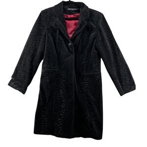 Giacca Gallery Black Textured Velvet Flocked Dress Coat Women’s L Red Lining