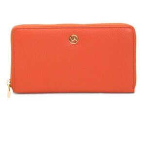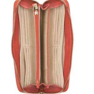 Stylish orange leather wallet with a sleek design. Perfect for organizing your essentials.