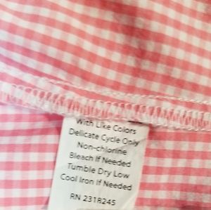 Small checkered pink and white button down shirt, it does have a tailored fit, cuffs with 2 buttons . The whale logo is embroidered close to the hem.