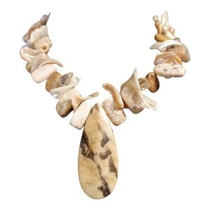 Never worn, this necklace from the Annapolis Greek Festival features beautiful stones of various sizes and neutral shades. It has a large tear drop stone in the center and an adjustable lobster claw closure. Wear this necklace with a long white dress and sandals. Since the necklace is neutral you could wear it with just about anything!