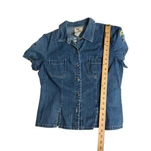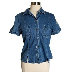 Vintage Ease Sport Embroidered Floral Paisley Cutout Denim Shirt Womens 10