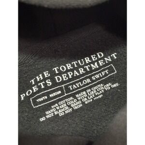 Wrap yourself in the iconic world of Taylor Swift with this must-have black hoodie from The Tortured Poets Department. Experience the soft embrace of premium cotton designed for ultimate comfort, perfect for casual outings or cozy nights in. The striking embossed logo adds a touch of sophisticated artistry, making this piece a standout addition to any fan's collection. Ideal for school days, concerts, or simply lounging at home. Please reference photos for any flaws featured (dark spot on hood, light general fading expected with black)