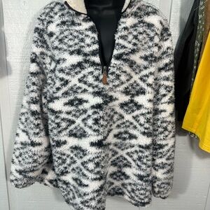 Lucky Find Black and White Sherpa Pullover Size Large EUC