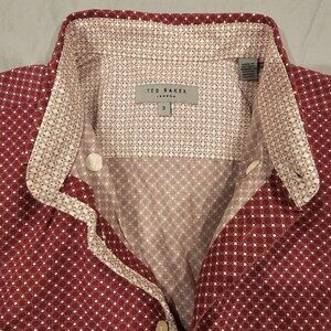 Ted Baker London Mens Slim Fit Red Diamond Print Button-Down Shirt Size 3 Cotton