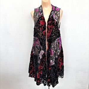 Womens Velvet Burnout Patchwork Open Front Duster Small