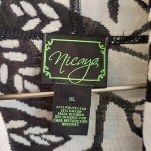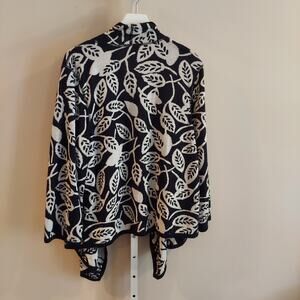 Open Front Cardigan Women XL Plack White Bold Graphic Leaf Print Artsy Cozy