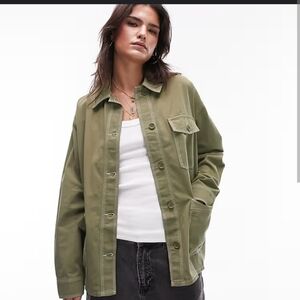 Asos Topshop Utility Contrast Stitching Yard Jacket, Lightweight Workwear Shirt, Casual, Grunge, Baggy, Loose Fitting, Oversized, Slight Discoloration on sleeve(pic), Preppy, Utilitarian, Military, 90s, Y2K, Shacket, Farmcore, Cabincore, Town and Country