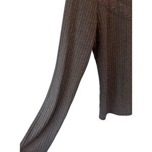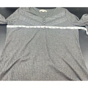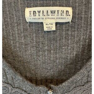 Idyllwind Womens Gray Pearl Button Ribbed Knit Lace Henley Top XL Dark Coquette