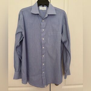 Vintage Burberrys of London Blue & White Striped Dress Shirt | Size 16.5/34