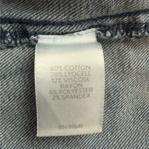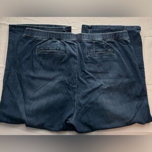 J. Jill denim cropped full leg jeans with tab waist and elastic across back of waist.