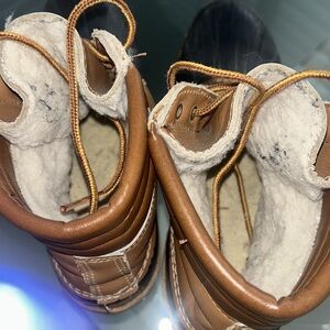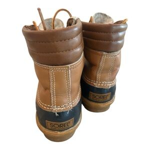 Sorel Waterproof Hiking Duck Boots sz 8 EUC Black Brown Lace Up Fur Lined