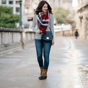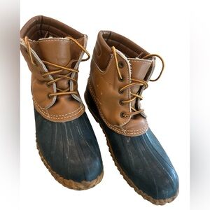 Sorel Waterproof Ladies Hiking Duck Boots sz 8 EUC Black Brown Lace Up Fur Lined