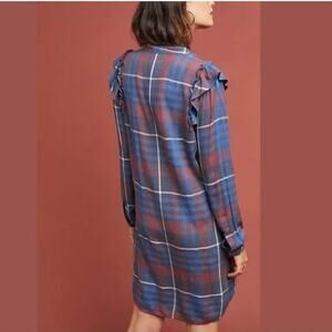 Cloth & Stone | Anthropologie Blue & Red Plaid Ruffle Detail Shift ShirtDress