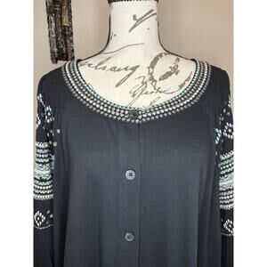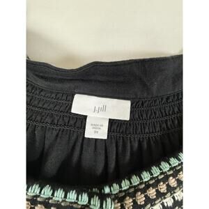 The J. Jill Embroidered Peasant Blouse in size 2X is a stylish and comfortable option for plus-size women. This black blouse features long sleeves and intricate embroidered accents, giving it a unique and peasant-inspired look. The brand's quality and attention to detail make this blouse a versatile and fashionable addition to any woman's wardrobe.