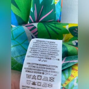 Bright and fun kids shirt featuring a vibrant jungle print. Perfect for adding a splash of color to any outfit.