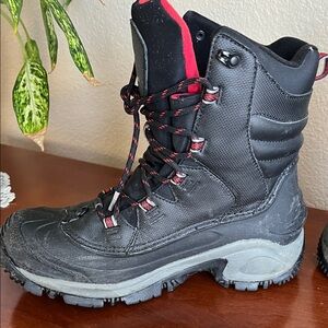 Men’s Columbia Bugaboo snow boots with black exterior and red lining/light cushion. Size 8.5z. Great traction on snow and ice. Hardly worn before he grew out of them. From a no smoking and no pet household.