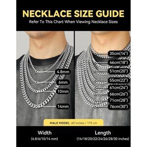 Size: 4mm/6mm/10mm/14mm Width, 14-30 inch length available. (The 14-inch option includes a 5cm extender chain.) Wear alone or with your favorite pendant—a sturdy men’s necklace for everyday wear. The chain you selected weighs 33g.