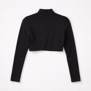 Naked Wardrobe Black Crop Top Mock Neck Long Sleeve Bodycon Basic Size Medium