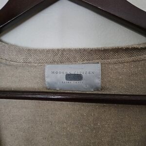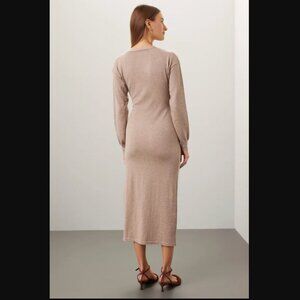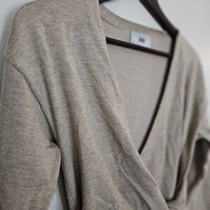 Modern Citizen Front-Wrap Dress Lenese Midi Oatmeal Tan V-Neck Business Casual