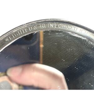 Preowned in very nice condition the mirror is not marred the jar has no cracks or chips. The lid is also in very nice condition looks like some very, very faint marks center circle (see lid photos).