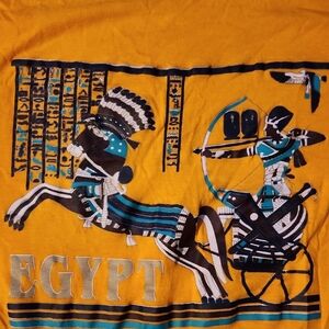 Vibrant orange t-shirt featuring an Egyptian-themed graphic. Perfect for casual wear. this shirt is from Egypt. part of 5 for 25 sale