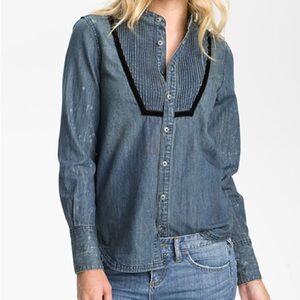 Free People Big Buti Baseball Cap White and Blue