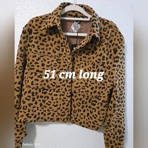 Stylish THML jean jacket with bold leopard print. Perfect for a trendy look.