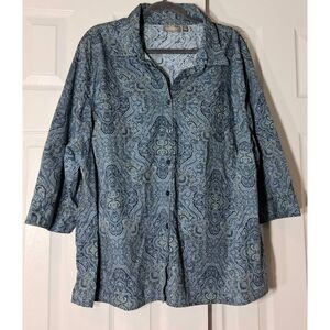 Croft and barrow womens 2xl paisley blouse blue shirt mom grandma shirt