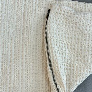 Pottery Barn, Pottery Barn pillow cover, textured pillow, lumbar pillow, home, home decor, neutral, minimalist, decorative, accent piece, honeycomb pattern, waffle knit, ivory pillow
