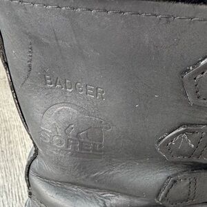 Sorel boots with black fur trim. Durable and stylish for winter.