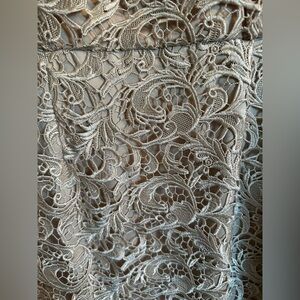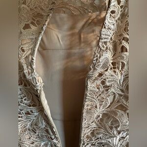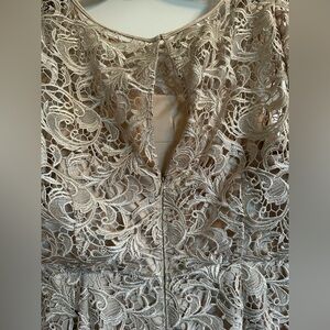 Stunning Chic lace design. Perfect for mother of the bride!! Brand new, never worn! I am 5’1, dress was professionally hemmed to accommodate my height.