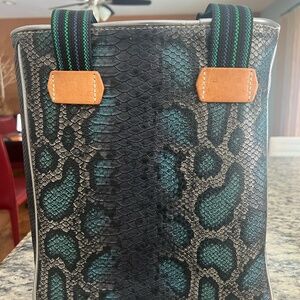 Beautiful and authentic Consuela Classic Tote featuring an allover embroidered floral design with leather trim and signature woven straps. This tote is spacious, durable, and perfect for everyday use, work, travel, or errands.