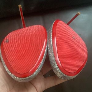 In like new condition. Beautiful silver multicolor glitter pumps. Will look amazing at any type of party or a night out!! Please see video. Rubber soles. Heel height is 4.5 inches. Sorry no box or dust bags.