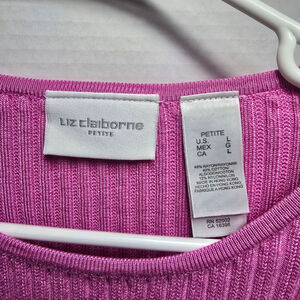 Women's Liz Claiborne Petite Pink Ribbed Crew Neck Sweater LP