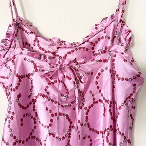 Pretty in pink. The deets: vintage rosebud pink satin babydoll slip dress • xs | wonderful vintage condition - see pictures for item details | this sweet slip dress has an all over rosebud pattern on a pink backdrop + adjustable shoulder spaghetti straps + loose silhouette + babydoll style + pullover + back tie for aesthetics only | fits true to size | 16” bust + 24.5”length | can be worn as lingerie or as a summer dress - it’s versatility is half the fun! | contact for questions l no trades or lowball offers pls