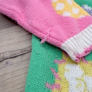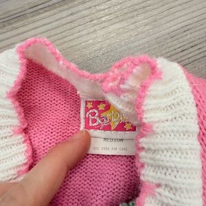 Charming Barbie knit set. Features vibrant patterns in pink, green, and white.