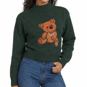English Factory Endless Rose Teddy Bear Knit Sweater Dark Green NEW
