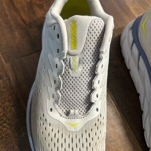 Women’s Hoka One One Clifton 7 Running Shoes. These sneakers are excellent for all day wear and are popular for nurses, teachers, and all manner of athletes. These have some wear, but overall in very good condition with plenty of life left.